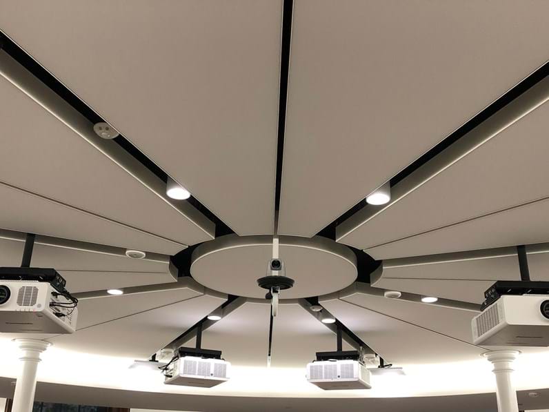 Tấm hấp thụ âm treo tự do và gắn tường làm bằng vải căng.