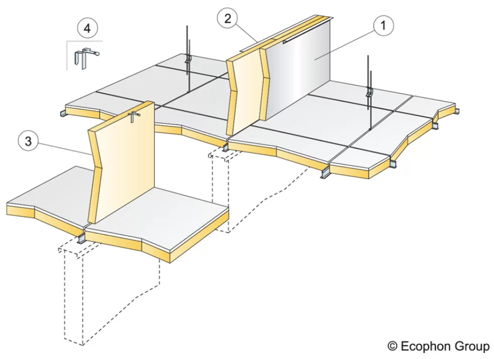Ecophon Combison Barrier là các tấm tiêu âm được lắp đặt thẳng đứng phía trên vách ngăn thuộc hệ thống thông gió, từ đó tạo nên vách ngăn âm thanh nhằm nâng cao khả năng cách âm. Sử dụng sản phẩm kết hợp với các hệ thống sản phẩm Ecophon khác để đạt được hiệu quả âm học tốt nhất.