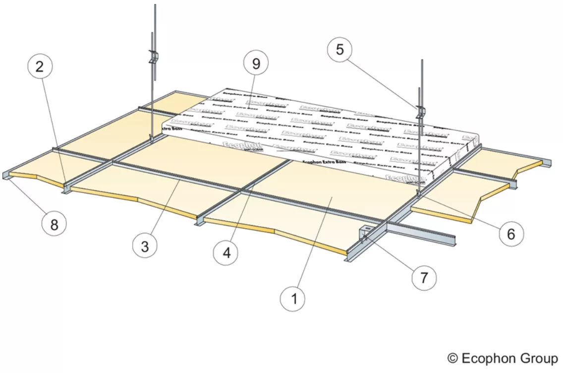 Ecophon Focus A là hệ thống trần tiêu âm có thiết kế lộ xương với các tấm trần có thể tháo dỡ dễ dàng. Sản phẩm được sử dụng cho các không gian yêu cầu hệ thống trần treo chắc chắn. Để nâng cao hiệu quả hút âm ở tần số thấp, nên lắp đặt thêm tấm Ecophon Extra Bass phía trên hệ thống trần treo.