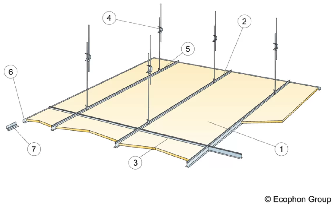 Các tấm trần có thể tháo dỡ dễ dàng. Độ sâu tháo dỡ tối thiểu theo sơ đồ lắp đặt.