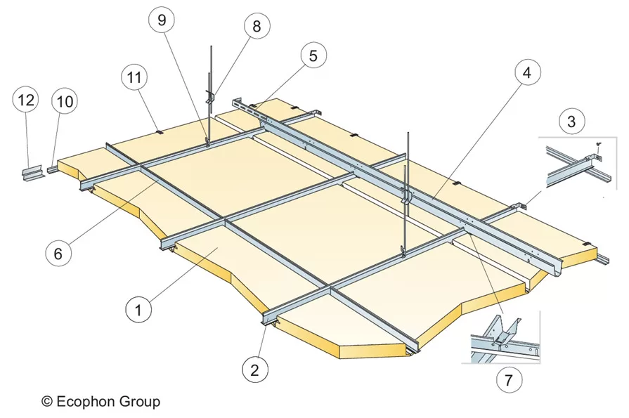 Các tấm trần có thể tháo dỡ dễ dàng. Độ sâu tháo dỡ tối thiểu theo sơ đồ lắp đặt.