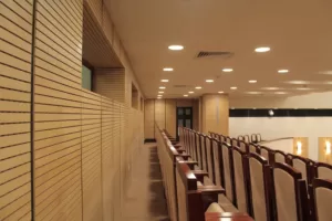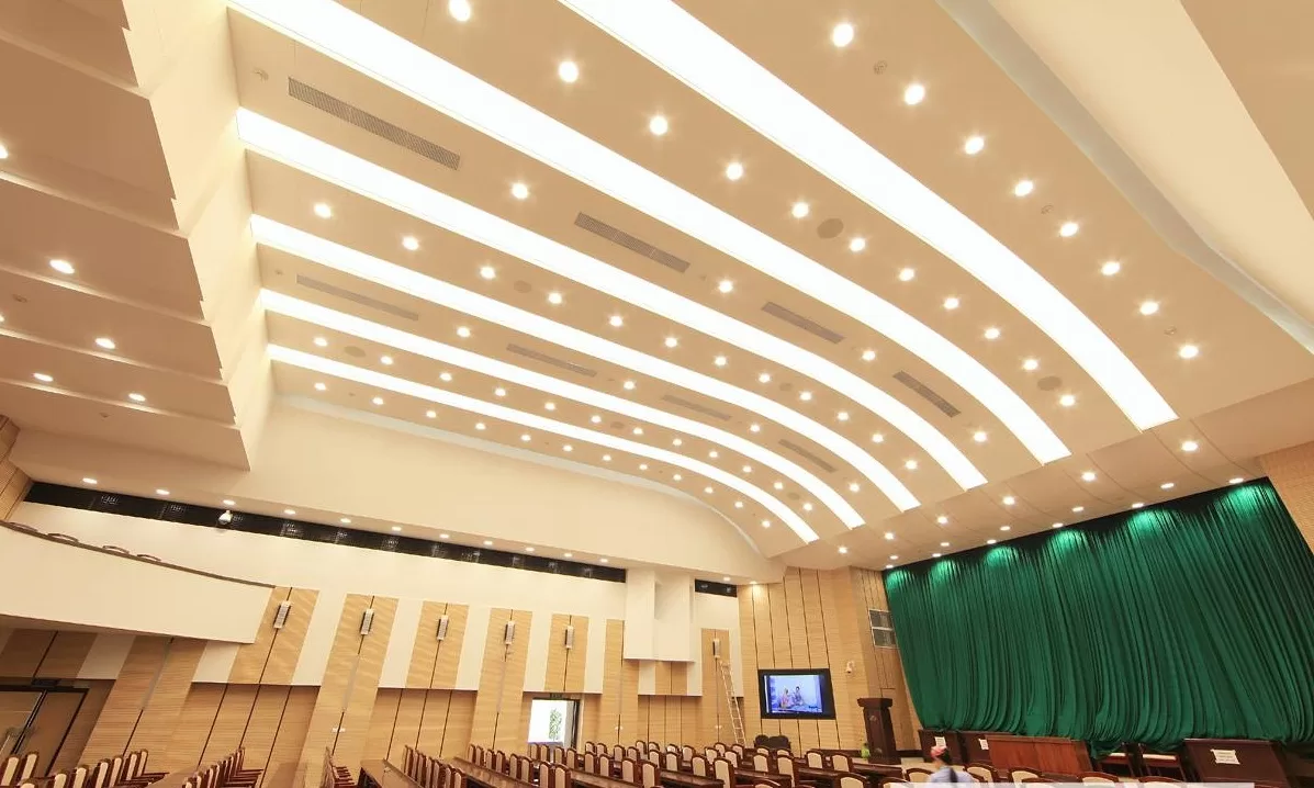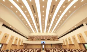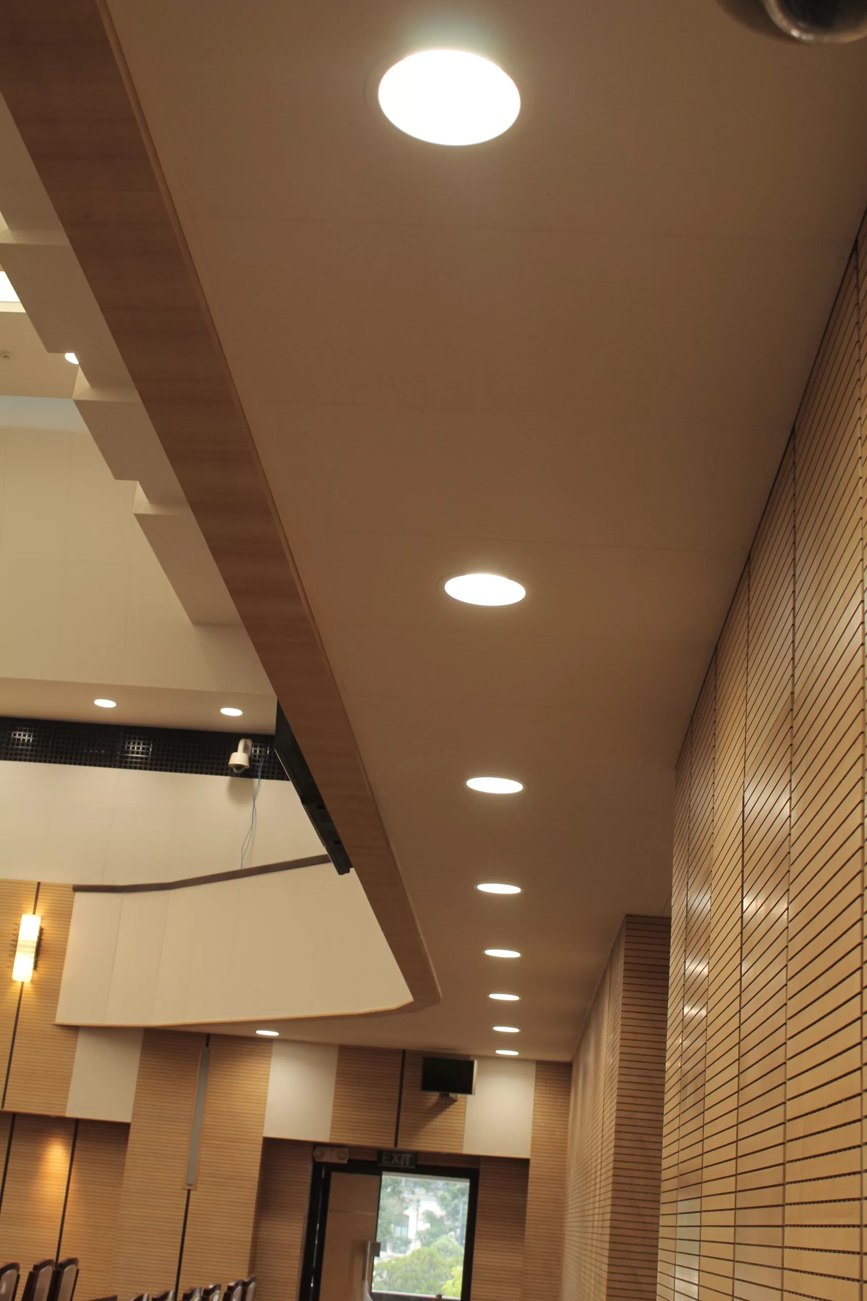 Công trình là sự kết hợp hài hòa giữa trần, tường âm thanh Ecophon – Thụy Điển và trần xuyên sáng Barrisol (Pháp) do công ty TNHH Phương Ngọc cung cấp và lắp đặt. Hội trường không chỉ đáp ứng được yêu cầu về môi trường âm thanh, giải pháp ánh sáng nhân tạo thông minh mà còn tạo nên một không gian hiện đại, ấn tượng về mặt thẩm mỹ.